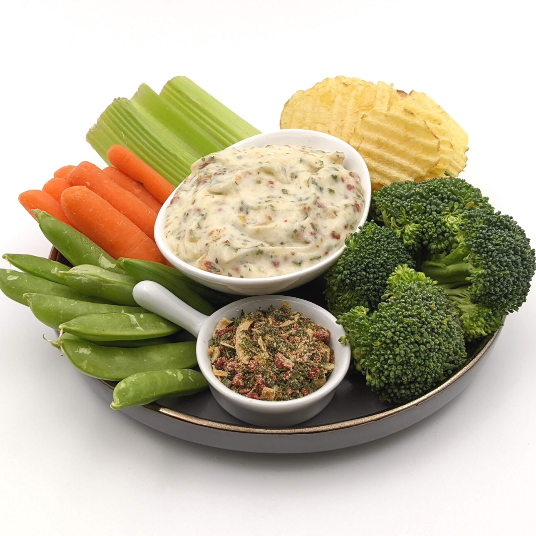 Do you like bacon? Do you like chives? Then this is the perfect dip for you. Perfectly balanced and complimented by black pepper, with garlic to drag out every flavour hiding in the chives, this dip is sure to be a crowd-pleasing favourite at any event. Adults will love the deep and simple flavours, and kids will be happy to have bacon with their veggies!
