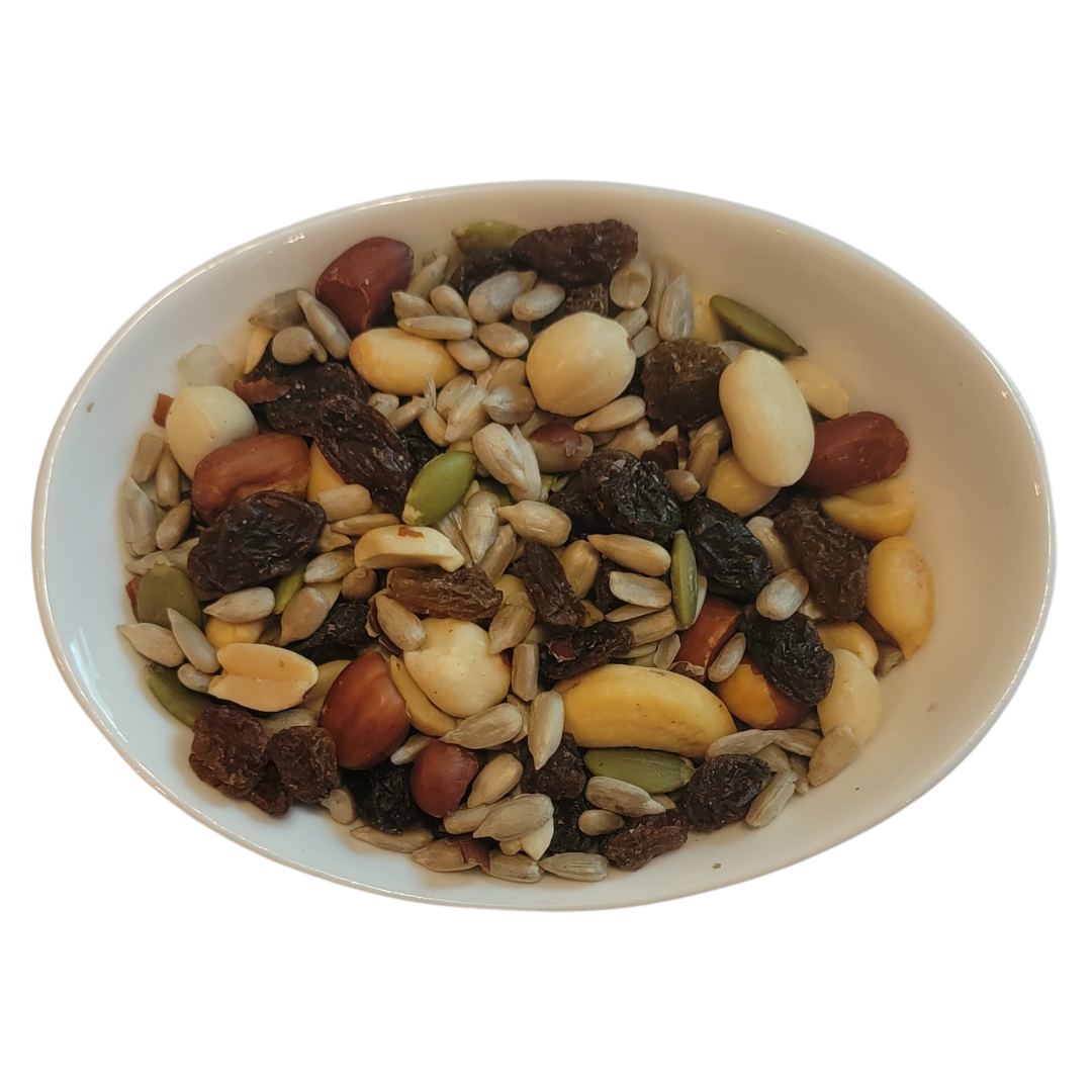 Our Healthy Energy mix is a healthy and delicious treat that combines dried fruit, nuts, and seeds without the addition of salt or sugar. This mix contains raisins, whole peanuts, cashews, sunflower seeds, and pumpkin seeds. This mix is a better snack for young ones, baking, and salads.