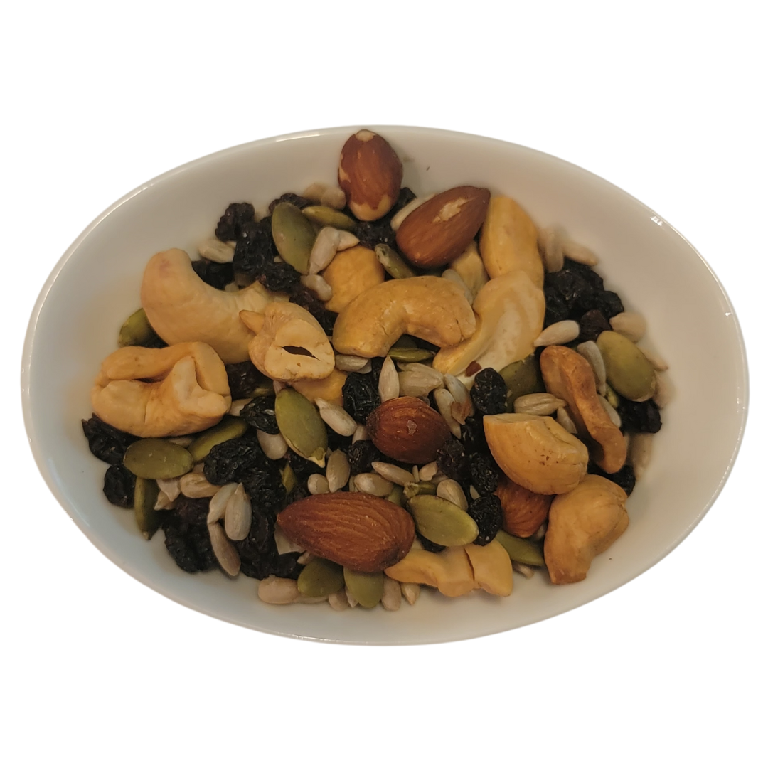 Our Santiago Chillin' Mix is a healthy and delicious blend of roasted nuts, roasted seeds, and dried fruits! This mix includes raw pumpkin seeds, sunflower seeds, raisins, cashews, and almonds. Nutty and fruity in flavour, this mix is also crunchy and chewy in texture; ideal for snacking, or topping, a salad.